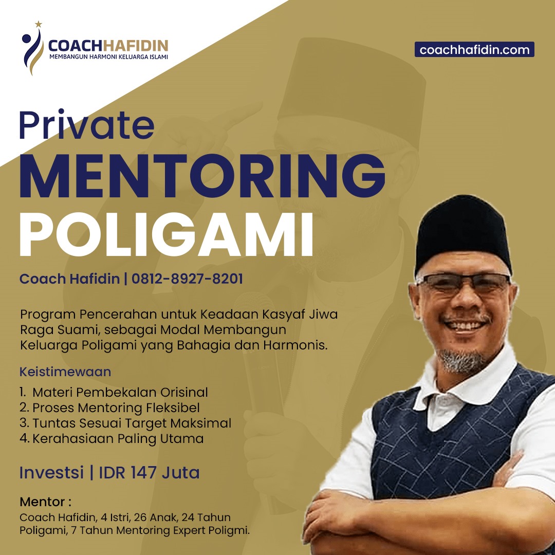 Private Mentoring Poligami (PMP): Program eksklusif bersama Coach Hafidin untuk kebijaksanaan rumah tangga.